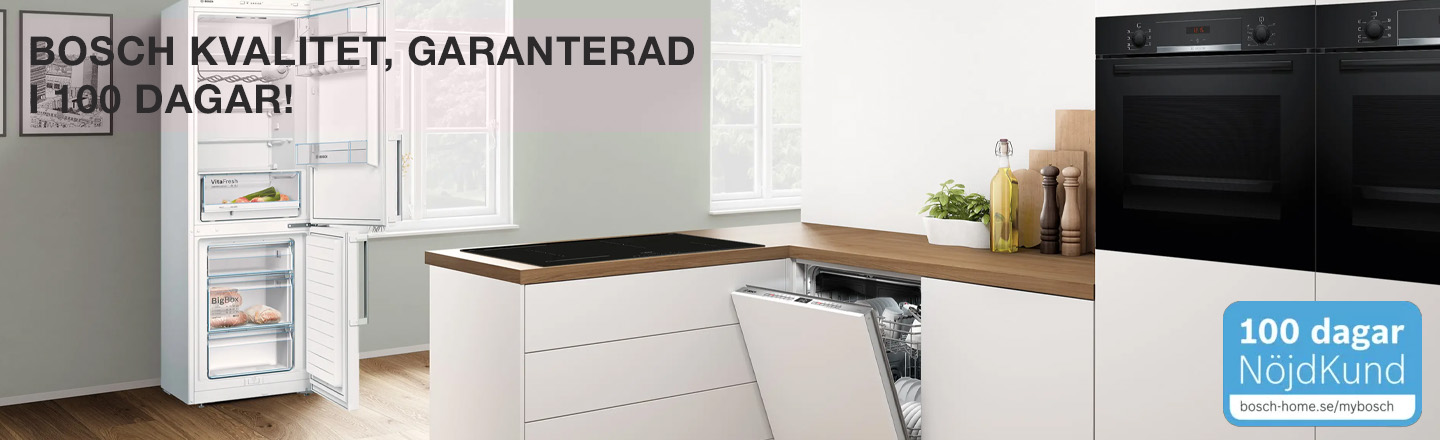 Under 100 dagar har du möjlighet att prova din Boschprodukt ordentligt. Om du mot förmodan inte är nöjd kan du returnera produkten inom 100 dagar och få pengarna tillbaka, med avdrag för returavgiften - 495 kr för stora hushållsapparater och 60 kr för småelprodukter.