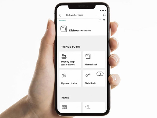 Med ConnectLife kan du styra och övervaka diskmaskinen direkt via mobil eller surfplatta. Du får tillgång till användarmanual, programval, inställningar och maskinens status samt möjlighet att starta, pausa eller stoppa program på distans. Appen hjälper dig även att välja rätt program för varje diskning.