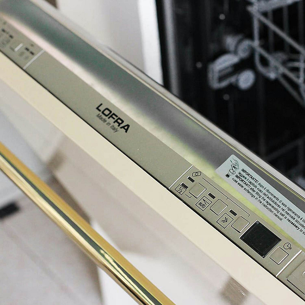 Elegant inbyggbar diskmaskin i klassisk italiensk design. Lofra Dolce Vita diskmaskin i svart med mässingsdetaljer är ett perfekt val för dig som vill kombinera stil, kvalitet och funktion i köket. Den helt integrerade designen gör att diskmaskinen smälter in snyggt i köksinredningen, samtidigt som Dolce Vita-seriens exklusiva uttryck ger en lyxig känsla.