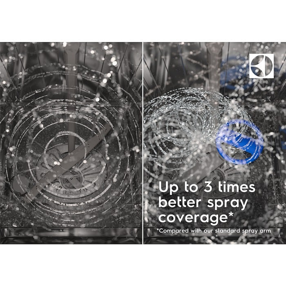 SatelliteClean-spolarmen sprider vattnet i flera riktningar och når hela diskmaskinen. Det gör att även större kastruller och tätt staplad disk blir ordentligt ren.