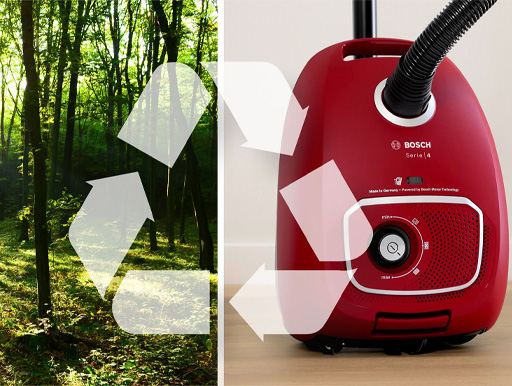 Bosch tar ansvar för både kvalitet och miljö. Denna dammsugare är tillverkad av 32 % återvunnen plast, och förpackningen består till 95 % av återvunnet papper. Inuti används komposterbart och återvinningsbart material. Tack vare den slitstarka Bosch-motorn tillverkad i Tyskland får du en produkt som håller länge ett hållbart val för både dig och planeten.