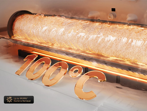 Efter städningen utför roboten en självrengöringscykel där rullen roteras och tvättas i 100 grader varmt vatten. Den höga temperaturen löser upp smuts, neutraliserar bakterier och håller moppen fräsch inför nästa användning. Systemet sänker automatiskt temperaturen efter rengöringen för säker användning i hemmet.
