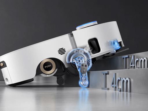 ProLeap systemet gör att Aqua10 Ultra Roller enkelt kan klättra över hinder upp till åtta centimeter, inklusive höga trösklar och mattkanter. De infällbara benen och det trehjuliga AgiLift chassit anpassar sig automatiskt till ojämna underlag och säkerställer en smidig övergång mellan olika rum utan avbrott.