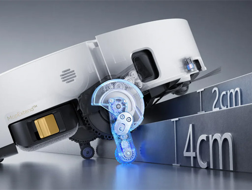 Med den uppgraderade ProLeap tekniken tar sig Aqua10 Ultra Track Complete över hinder på upp till sex centimeter, inklusive dörrspår, trösklar och mattkanter. Det intelligenta Triple Wheel AgiLift chassit anpassar sig efter golvets höjdskillnader och ger smidiga rörelser på mattor och under möbler. Tack vare sin stötdämpande konstruktion sker förflyttningen tyst och stabilt, vilket gör den idealisk även för hem med flera nivåer.