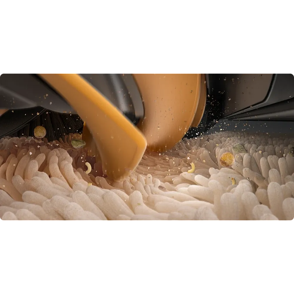 Dreame D20 är utrustad med Vormax-sugeffekt på hela 13 000 Pa som effektivt tar bort hår, damm och smulor från alla typer av golv. Tack vare fem justerbara sugeffektsnivåer kan du enkelt anpassa rengöringen efter yta och smutsnivå. Oavsett om det handlar om hårda golv, mattor eller svåråtkomliga hörn levererar D20 en grundlig rengöring med upp till 100 % uppsugning av större partiklar.