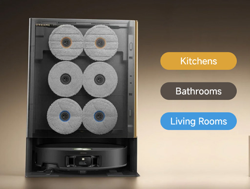 Den innovativa Multi Mop dockningsstationen växlar sömlöst mellan olika mopptyper för att anpassa rengöringen efter varje rum. Det förhindrar korskontaminering mellan kök, badrum och vardagsrum och ger en djupare och mer hygienisk rengöring. I köket används nylonborstade moppar som skrubbar bort fett och envis smuts utan att skada ytan. I badrummet hanterar svampmoppar vätskefläckar effektivt samtidigt som bakterier elimineras. I vardagsrummet används termiska moppar med varmt vatten på 45 grader för att lösa upp fläckar och återställa golvens naturliga glans