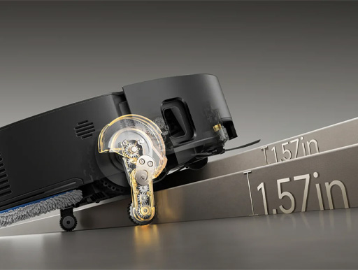 Den avancerade ProLeap tekniken gör att robotdammsugaren enkelt tar sig över trösklar, mattkanter och ojämna ytor upp till åtta centimeter. Den navigerar smidigt över dörrspår, under möbler och runt hinder utan att fastna. Den stötdämpande designen gör rörelserna tysta och säkra samtidigt som rengöringen sker med hög precision