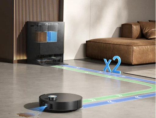 OmniSight systemet använder dubbla AI-kameror och 3D strukturerat ljus för att kartlägga och undvika över 240 olika objekt. Det känner av små hinder som kablar, strumpor och leksaker med millimeterprecision och planerar rutter som rengör alla ytor effektivt utan kollisioner. Navigeringen är lika noggrann i mörka hörn tack vare de inbyggda LED-lamporna som lyser upp vägen