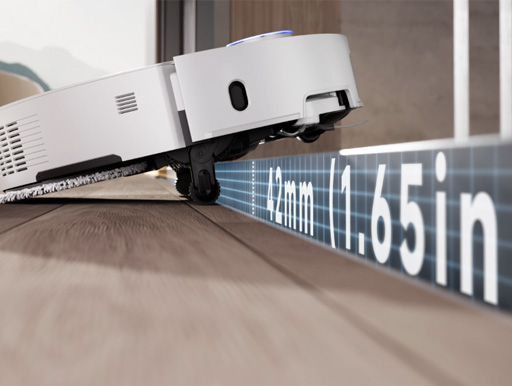 reame X50 Ultra Complete är utrustad med det avancerade ProLeap systemet som gör att robotdammsugaren enkelt klarar trösklar och hinder upp till sex centimeter. Med en innovativ hjuldesign och smart stötdämpning tar den sig smidigt över dörrspår, mattkanter och möbelben utan att skada inredningen. Det tysta navigeringssystemet säkerställer en mjuk rörelse med låg ljudnivå, perfekt för hem där man vill ha en effektiv men stillsam städning. De tåliga, indragbara benen är testade för upp till 30 000 cykler och garanterar lång hållbarhet och tillförlitlighet över tid.