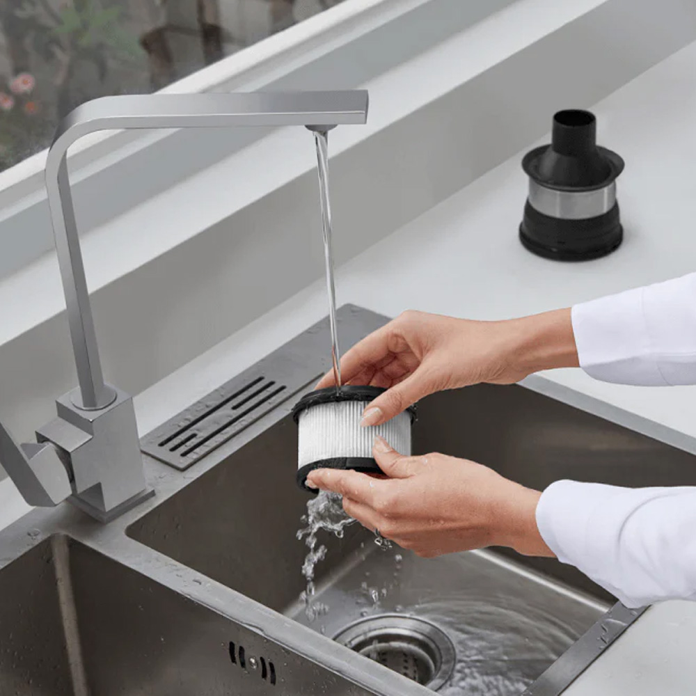 Alla komponenter, inklusive dammbehållaren, filtret och cyklonen, är tvättbara vilket gör underhållet enkelt. Det utbytbara batteriet ger dessutom möjlighet att förlänga städtiden ytterligare.