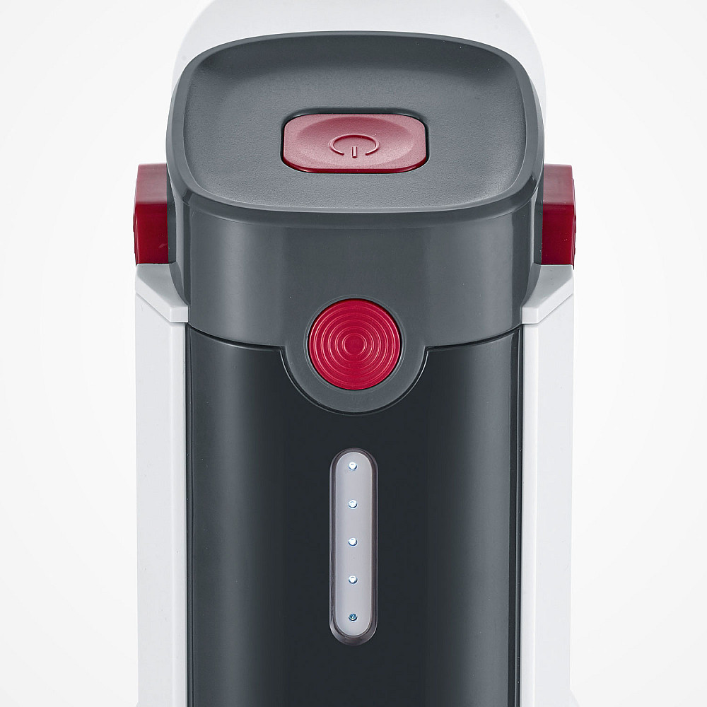 Det motordrivna munstycket med LED-belysning gör att du enkelt ser damm även i mörka hörn. Cyklonteknologin separerar effektivt smuts och partiklar i den påslösa behållaren på 400 ml, medan E12-filtret fångar upp 99,95 % av dammpartiklarna perfekt för allergiker.
