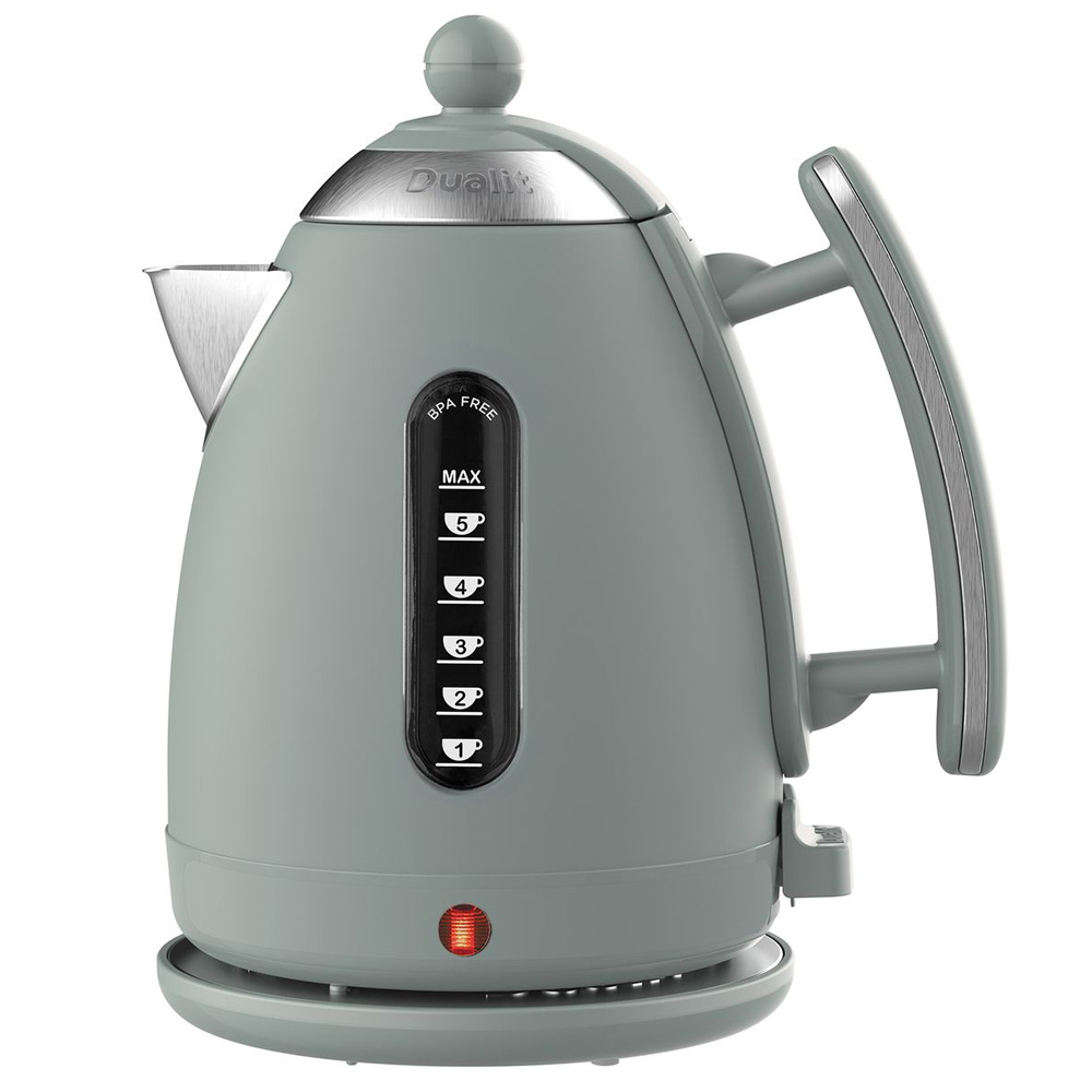 Modern design: Den här mindre vattenkokaren från brittiska Dualit har en modern utformning och ett bekvämt ergonomiskt handtag som gör det lätt att hälla upp vattnet.