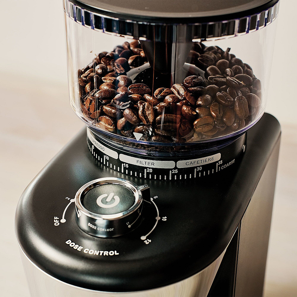 Med 35 valbara inställningar kan du enkelt anpassa malningsgraden efter bryggmetod från espresso till presskaffe. Den kraftfulla motorn kombinerad med koniska kvarnar i rostfritt stål säkerställer en jämn och smakbevarande malning.