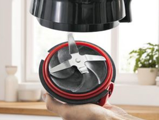 Njut av en blender som är enkel att både montera och rengöra. Alla löstagbara delar är diskmaskinssäkra vilket gör rengöringen snabb och smidig. Kannan sätts enkelt på plats med ett klick och den smarta sladdförvaringen hjälper dig hålla köksbänken fri från röror. En praktisk stamp medföljer för att trycka ner frysta eller trögflytande ingredienser under mixningen utan att behöva ta av locket.