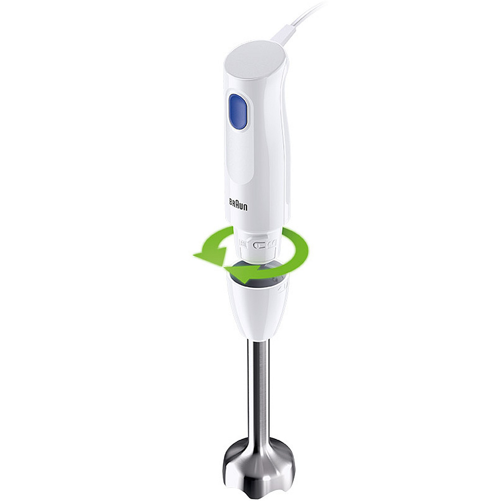 Upptäck den nya enkelheten med Brauns lättaste stavmixer, MultiQuick 1, som gör det möjligt att mixa med bara en enda knapptryckning. Den enkla hastighetsknappen är perfekt placerad för att du snabbt ska kunna blanda smoothies, soppor, såser eller desserter med minimal ansträngning.