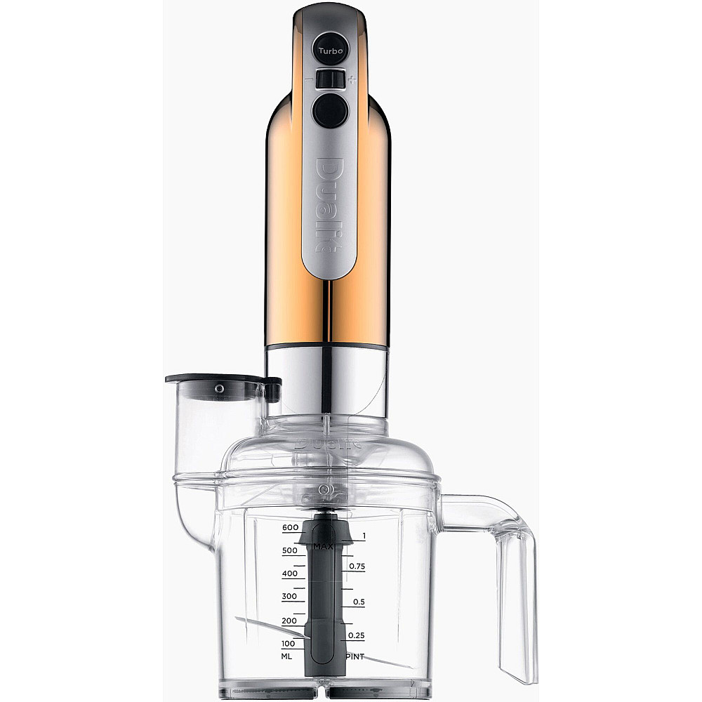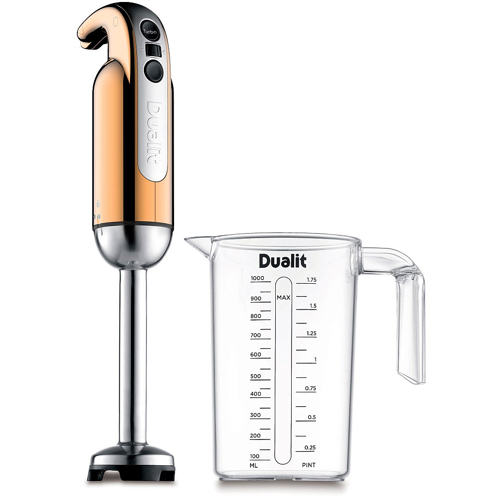 Dualit stavmixer i koppar är en kraftfull och mångsidig hjälpreda i köket som låter dig hacka mosa blanda och vispa med precision. Den starka 700W motorn ger snabb och jämn bearbetning av allt från smoothies till barnmat och fluffig grädde.