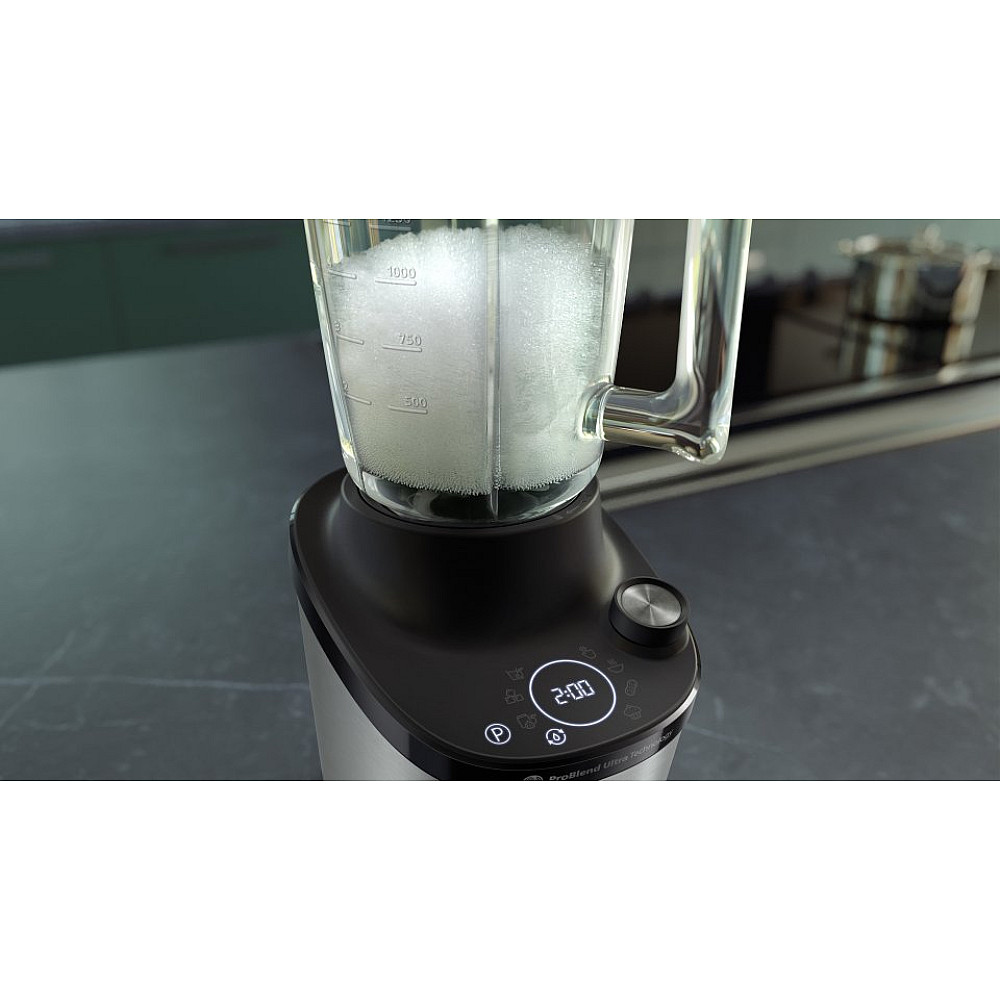 Upplev enkelheten med mixern i 7000-serien! Du kan ställa in tid och hastighet med genvägsprogrammen på den digitala displayen, så att dina favoritrecept är bekvämt tillgängliga. Du kan enkelt tillaga smoothies, nötsmör, desserter, soppor och såser, och det finns även en iskrossnings- och rengöringsfunkcion.