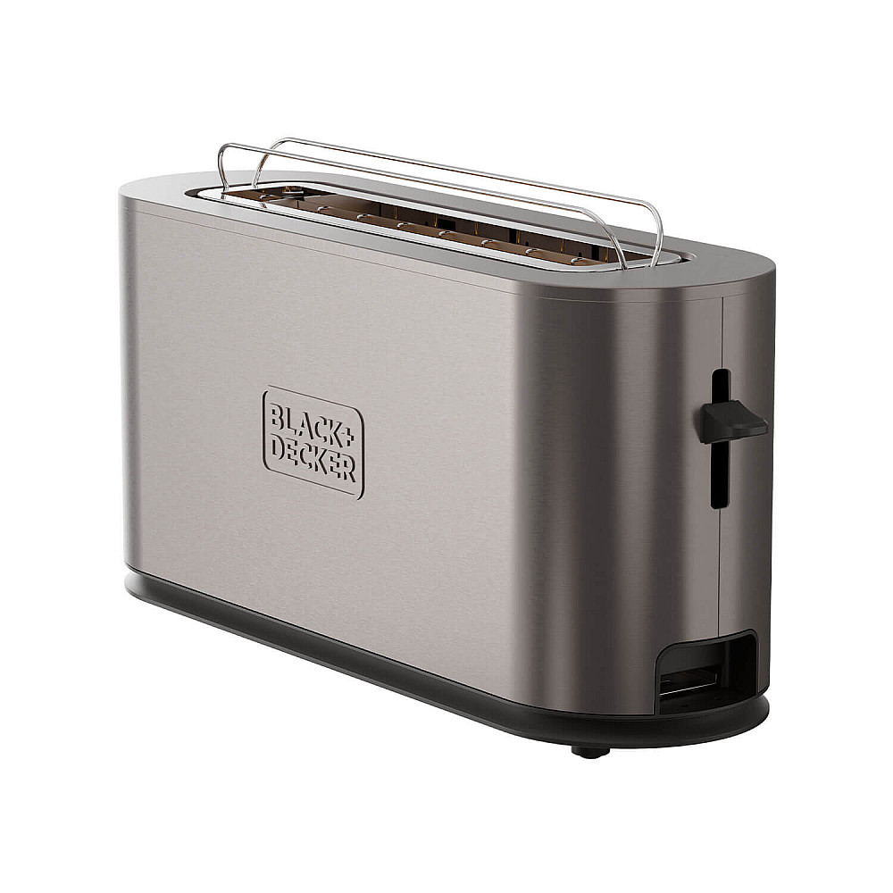 Effektiv brödrost från Black+Decker med långt fack och 1000 W effekt som ger snabb och pålitlig rostning, perfekt för både vardagsbruk och större brödskivor.