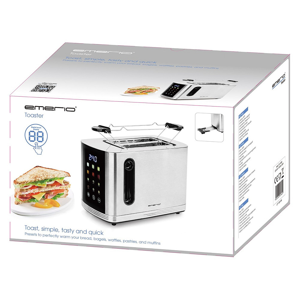 Upptäck Emerio TO 132888, en elegant och modern brödrost som kombinerar avancerad teknik med stilren design. Med en färgglad och intuitiv LED pekskärm får du full kontroll över rostningsprocessen och kan anpassa resultatet efter din smak. Brödrosten är perfekt för dig som vill börja dagen med en frukost i toppklass.