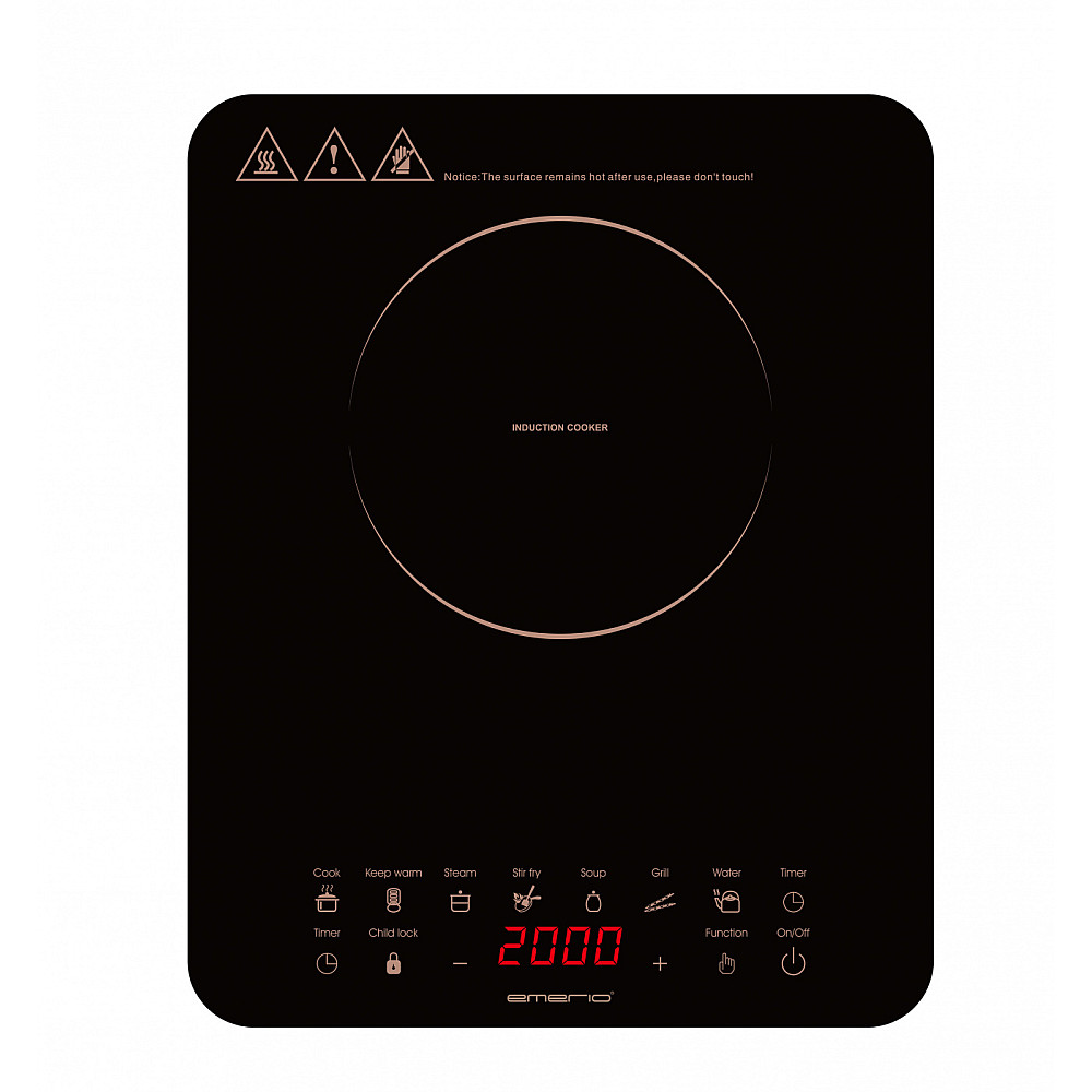 Induktionsplattan från Emerio har en modern svart design med digital display, touchkontroller och tydliga symboler för enkel användning. Temperaturen kan justeras mellan 80 och 240 grader och du kan välja mellan åtta värmesteg eller sex förinställda snabbval. Med inbyggd timerfunktion får du full kontroll över matlagningen, och tack vare de antiglid fötterna står plattan stadigt på plats. En praktisk, säker och effektiv kökshjälp som gör matlagningen både enkel och bekväm.