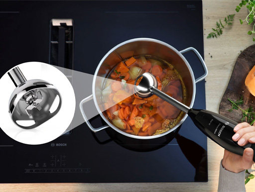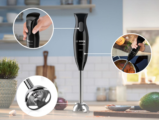 Upptäck Bosch CleverMixx MSM2620B stavmixer en kraftfull och mångsidig kökspartner som gör matlagningen enklare, snabbare och roligare. Med en motor på 600 watt mixar, puréar och blandar du enkelt alla typer av ingredienser, från fräscha smoothies till lena soppor och såser. Den fyrbladiga QuattroBlade-kniven ger snabb och effektiv bearbetning med ett jämnt resultat varje gång. Kniven är utformad för att minska stänk, så att du kan hålla köket rent medan du mixar.