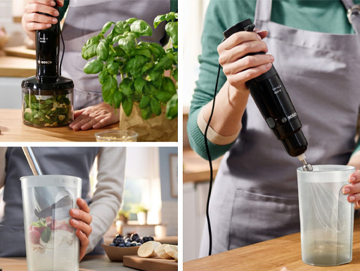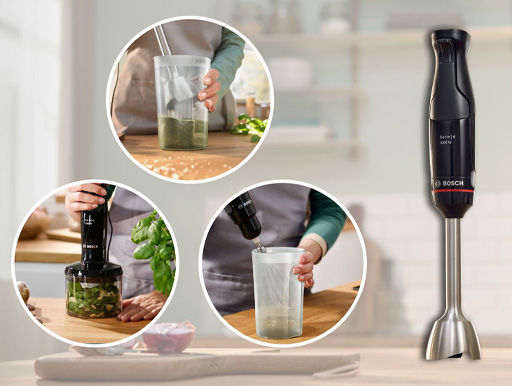 Upptäck Bosch ErgoMaster MSM4B621, en stavmixer med imponerande 1000 watts motor som ger kraft nog att hantera även de tuffaste ingredienserna. Med Performance Drive-teknik får du jämn kraftöverföring och perfekt mixning vid varje användning. Den intuitiva Dynamiska hastighetskontrollen gör det enkelt att justera farten med en hand, medan det ergonomiska greppet ger maximal komfort och kontroll. QuattroBlade-systemet med fyra vassa blad ger snabb och jämn mixning utan stänk, tack vare den smarta AntiSplash-designen.