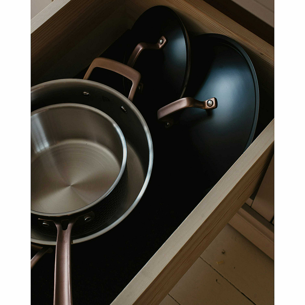 Skapad för att prestera i alla miljöer. Oavsett om du lagar mat inomhus eller utomhus kan du lita på att denna gryta levererar stabil prestanda. Kombinationen av rena linjer och hamrade ytor ger dessutom ett unikt utseende och ett bättre grepp som gör grytan både snygg och praktisk.