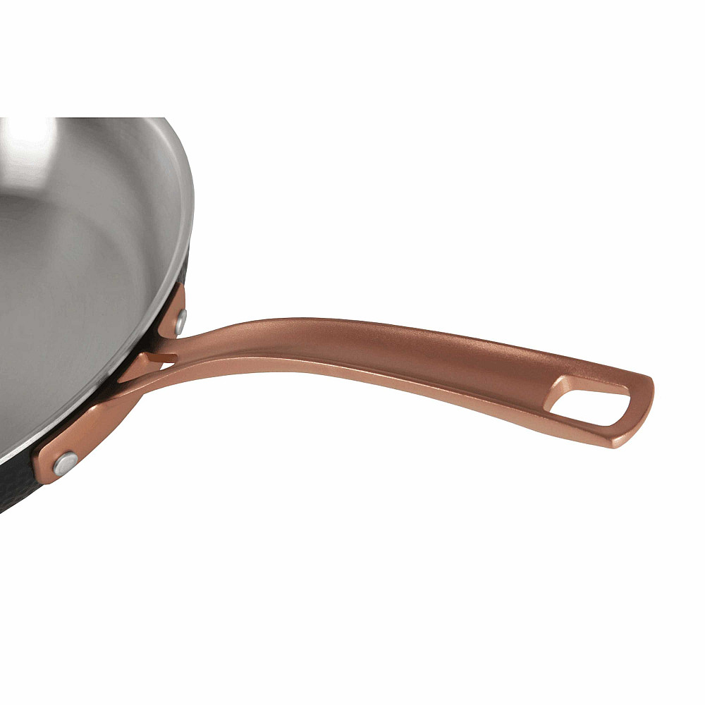 Avancerad 3 lagers konstruktion. Den genomtänkta konstruktionen med en kärna av aluminium ger snabb och jämn värmefördelning över hela stekytan. Insidan i SS304 rostfritt stål ger styrka slitstyrka och mångsidighet vilket gör stekpannan lämplig för både vardagsmat och mer avancerade rätter.