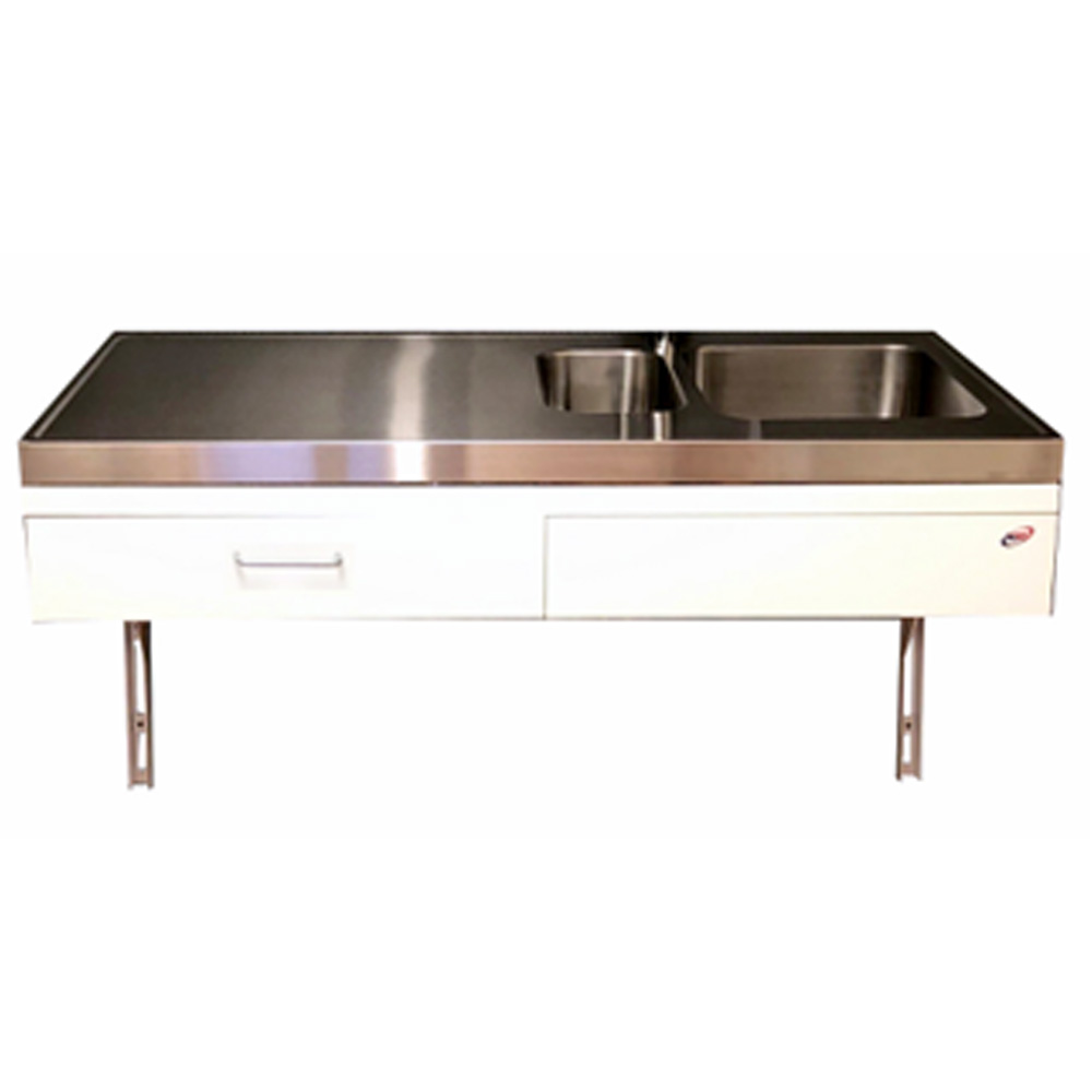 - Rostfri diskbänk, utrustad med två diskhoar