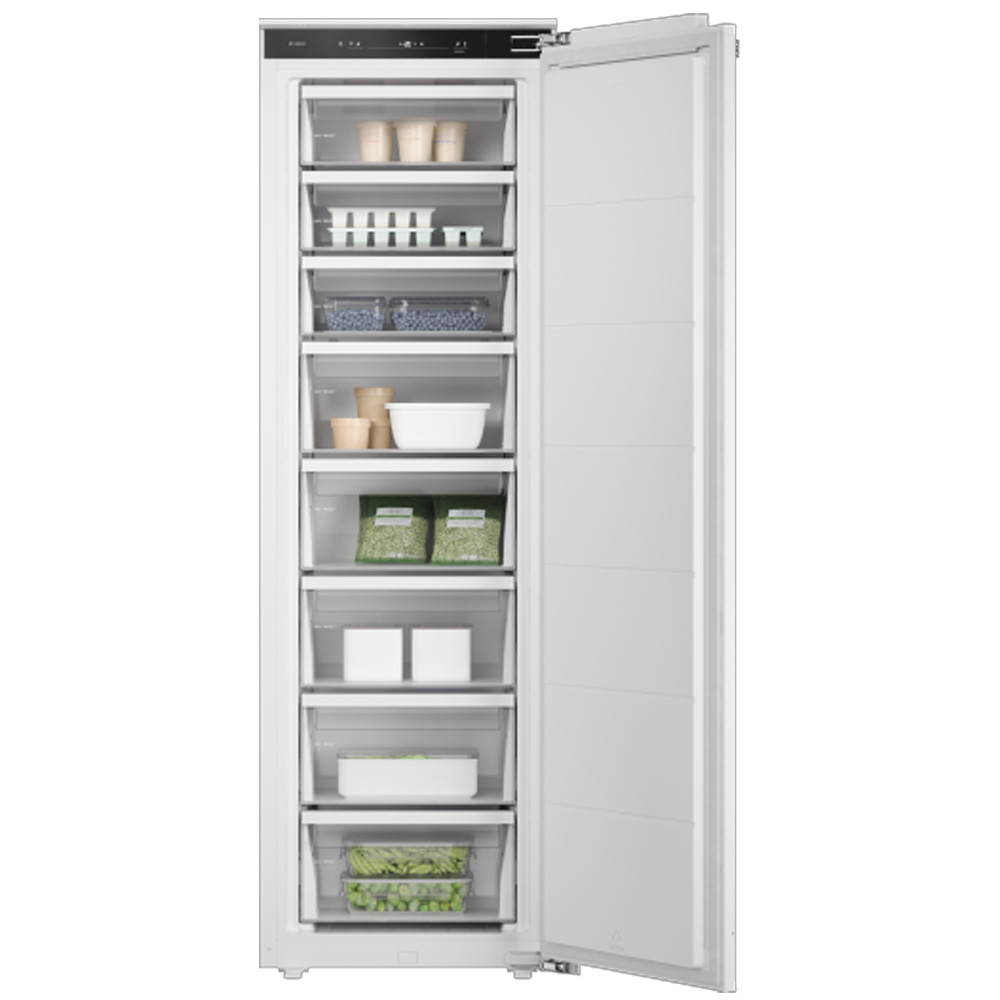 Förvaringen är generös med åtta praktiska lådor som ger god överblick och enkel sortering av livsmedel. Med super freeze-funktionen kan större mängder mat frysas in snabbt, perfekt efter storhandling. Adaptive temperature control säkerställer dessutom en stabil temperatur som skyddar maten och sparar energi.