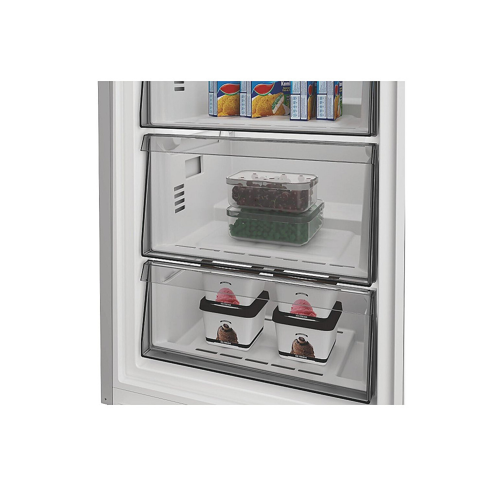 Avancerad NoFrost teknik: Med NoFrost systemet undviker du helt isbildning i frysen, vilket ger en konstant och jämn temperatur samt sparar tid genom att eliminera behovet av manuell avfrostning. Den effektiva luftcirkulationen ser till att alla varor kyls ned på ett jämnt och säkert sätt, något som förbättrar hållbarheten för alla frysta produkter.