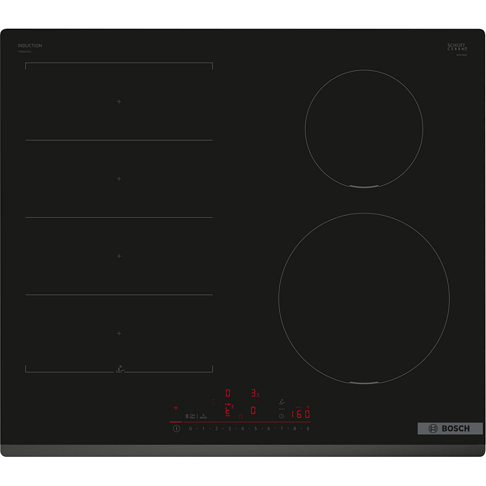 Modern induktionshäll med full kontroll över matlagningen. Denna induktionshäll i Bosch Serie 6 är framtagen för exakt och effektiv matlagning. DirectSelect ger omedelbar åtkomst till önskad effekt och kokzon. FlexInduction och Easy Flex Zones anpassar värmeytan efter kastrullens placering och storlek. PerfectFry Plus håller stektemperaturen stabil och minskar risken för vidbränd mat. Med Smart Hood Automatic kommunicerar hällen med en kompatibel fläkt och justerar ventilationen automatiskt.