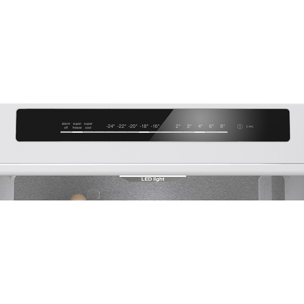 Genomtänkta säkerhetsfunktioner. LED?belysning ger god överblick över innehållet, doorAlarm varnar om dörren lämnas öppen och modellen kan placeras mot vägg eller i nisch utan krav på extra mellanrum.