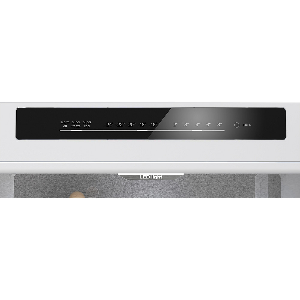 Smarta detaljer för trygg användning. LED?belysning ger god överblick över innehållet, doorAlarm varnar om dörren lämnas öppen och modellen kan placeras mot vägg eller i nisch utan krav på extra mellanrum.