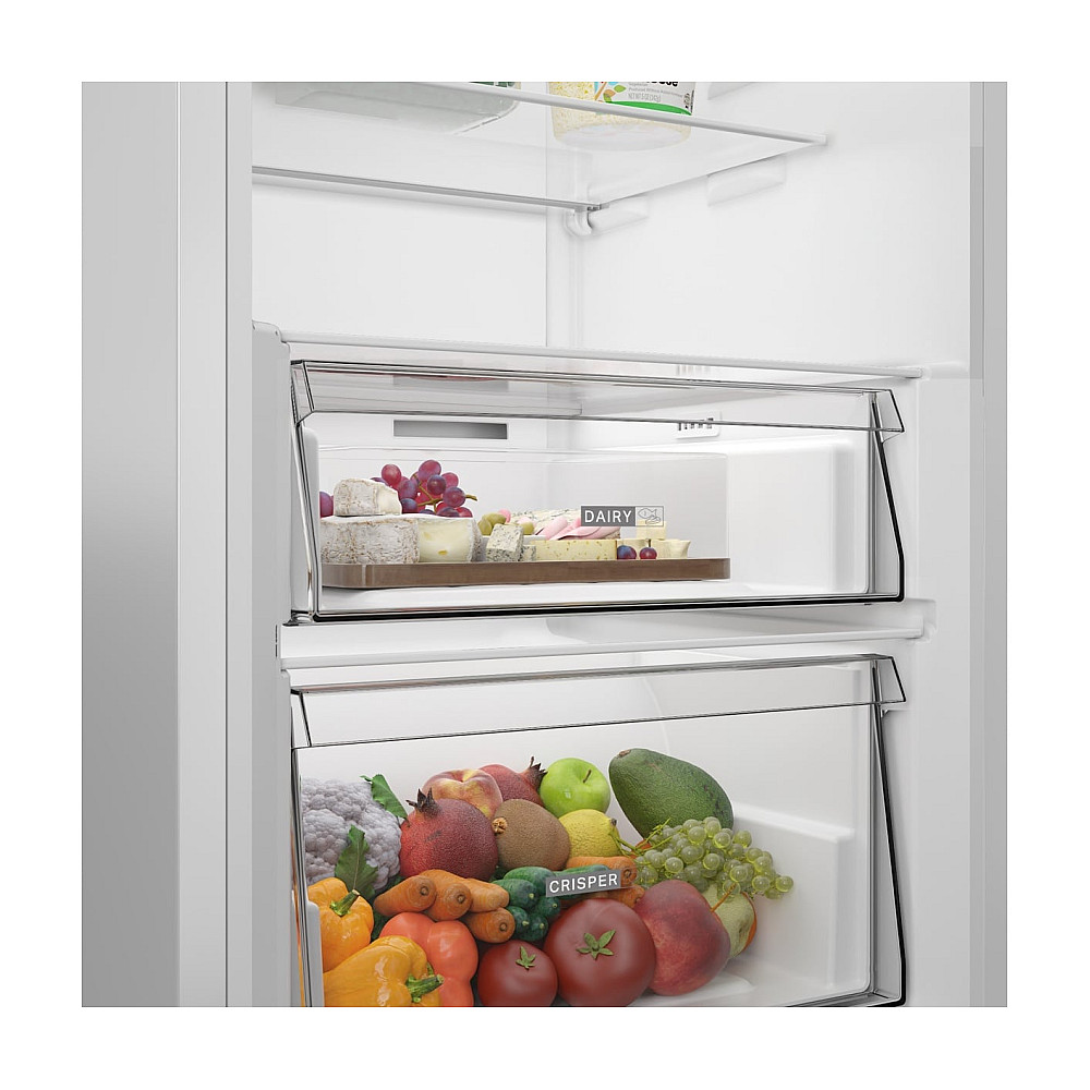 Teknik som bevarar fräschören: Fresh Lock Cooling System säkerställer en jämn temperatur i hela skåpet, vilket minskar temperatursvängningar och skyddar livsmedlens kvalitet. I Fresh Zone får känsliga produkter som kött och fisk optimala förhållanden utan risk för att frysa.