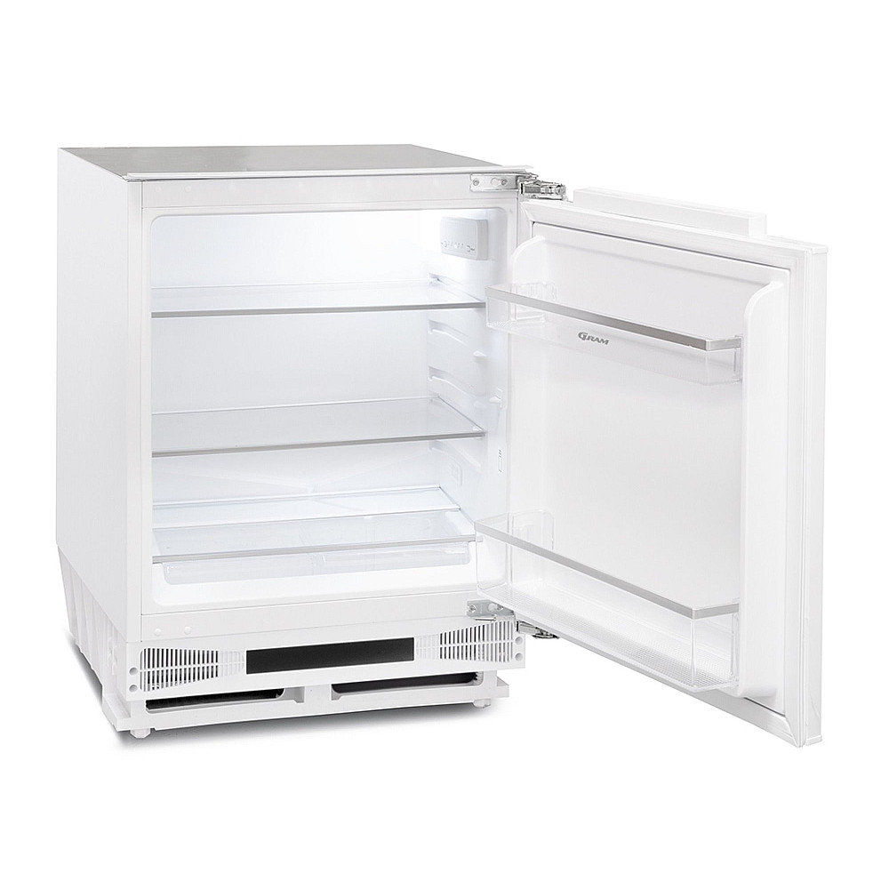Genomtänkt förvaring för vardagens behov. Gram KSU 600864 har en nettovolym på 135 liter och är utrustat med två justerbara hyllor, två dörrhyllor och två grönsakslådor. Det ger en praktisk och flexibel inredning som gör det enkelt att organisera matvaror på ett överskådligt sätt.
