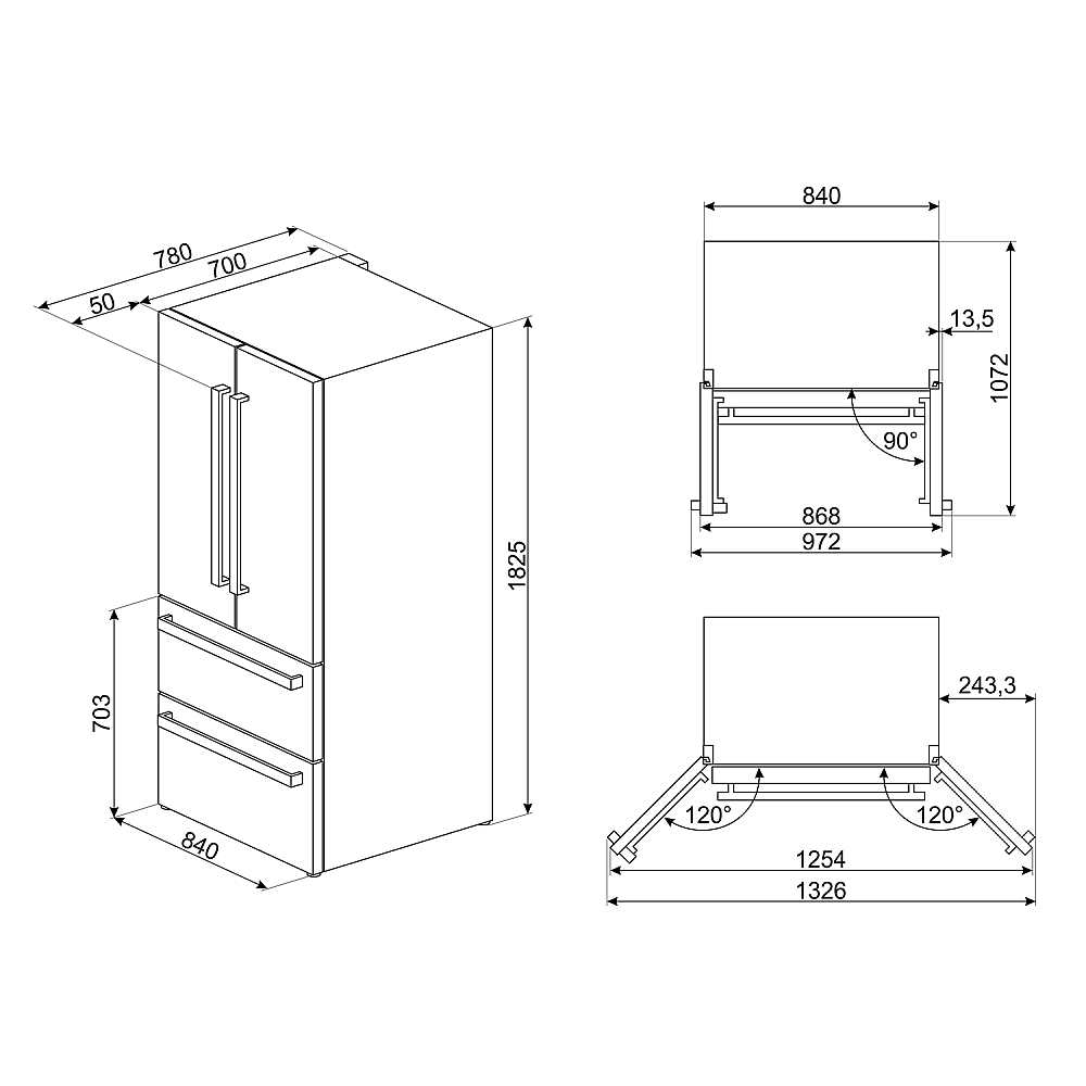 Smeg french door kyl och frys i svart med 2 dörrar och 2 lådor