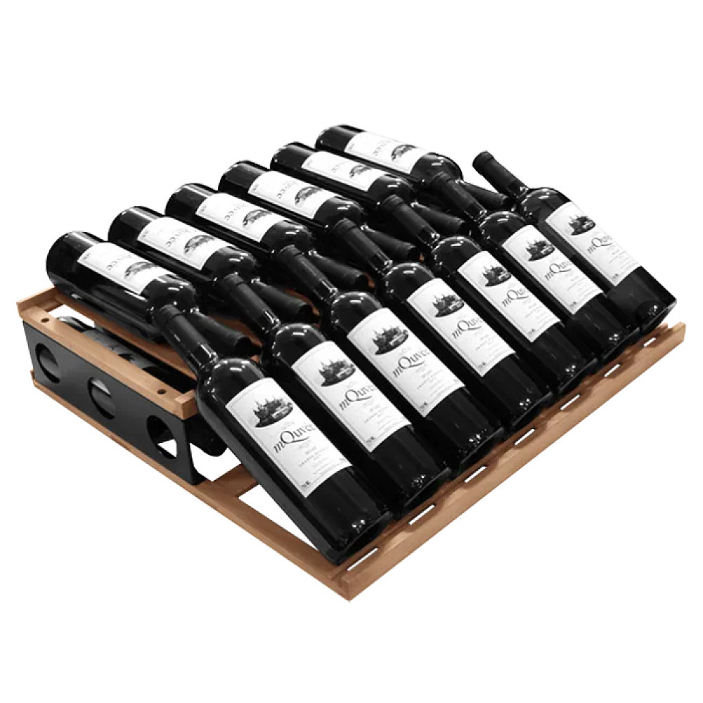 Elegant displayhylla för vinlagringsskåp. Denna moderna och exklusiva trähylla från mQuvée är ett perfekt tillbehör för dig som vill skapa en mer stilfull och personlig vinförvaring. Med ett praktiskt displayinlägg kan du presentera dina viner lutandes och ge skåpet ett mer exklusivt uttryck.
