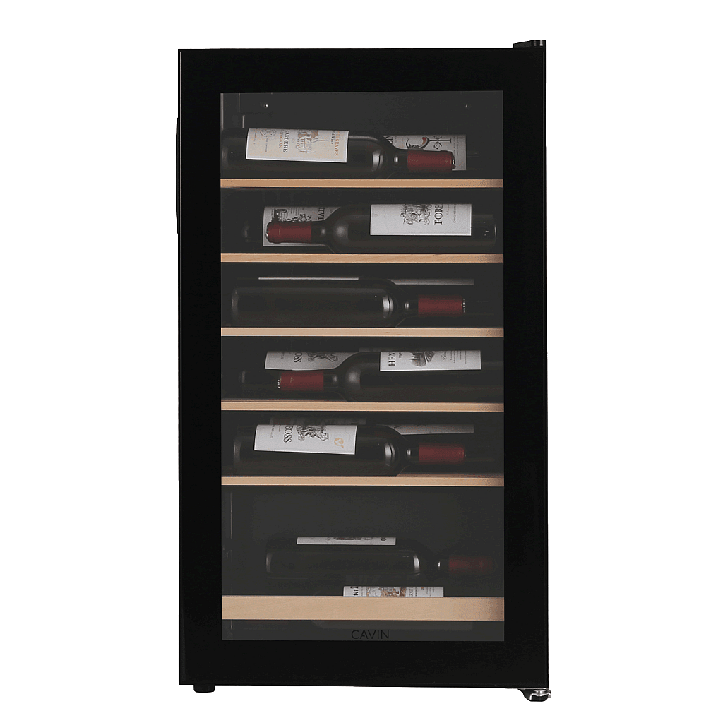 Cavin erbjuder en kompakt och stilren lösning för vinförvaring. Denna fristående vinkyl i svart design kombinerar funktionalitet med ett modernt uttryck och passar perfekt för dig som vill förvara vin även där utrymmet är begränsat. Tack vare det mindre djupet är vinkylen enkel att placera i kök, vardagsrum eller andra delar av hemmet.- Plats för upp till 17 vinflaskor