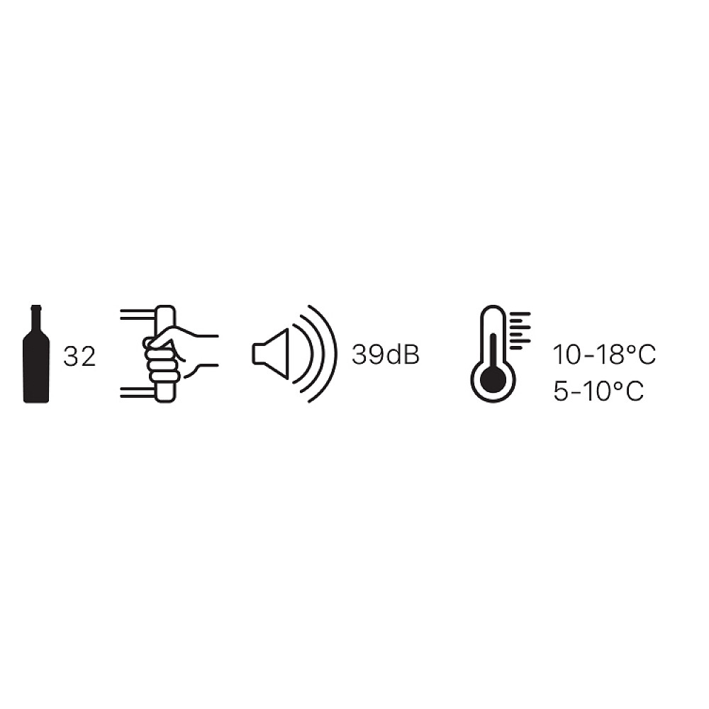 Elegant design och enkel användning. Den UV-skyddade glasdörren finns i flera frontutföranden, inklusive rostfritt stål. Invändigt placeras flaskorna på trähyllor med räcken och belyses av LED-ljus i vitt blått eller amber. Temperaturen styrs via LED-touchskärm, och frontventilation möjliggör smidig inbyggnad.
