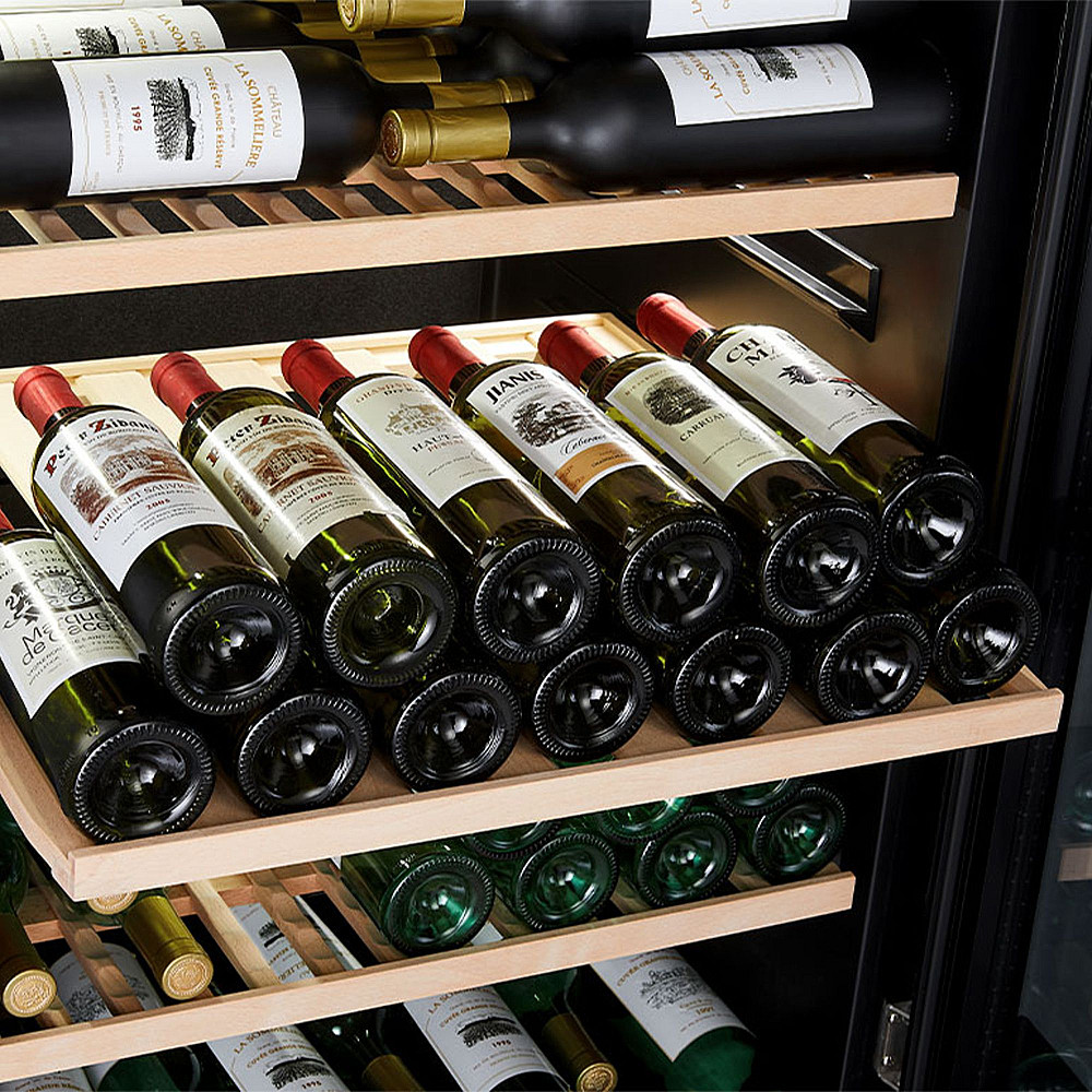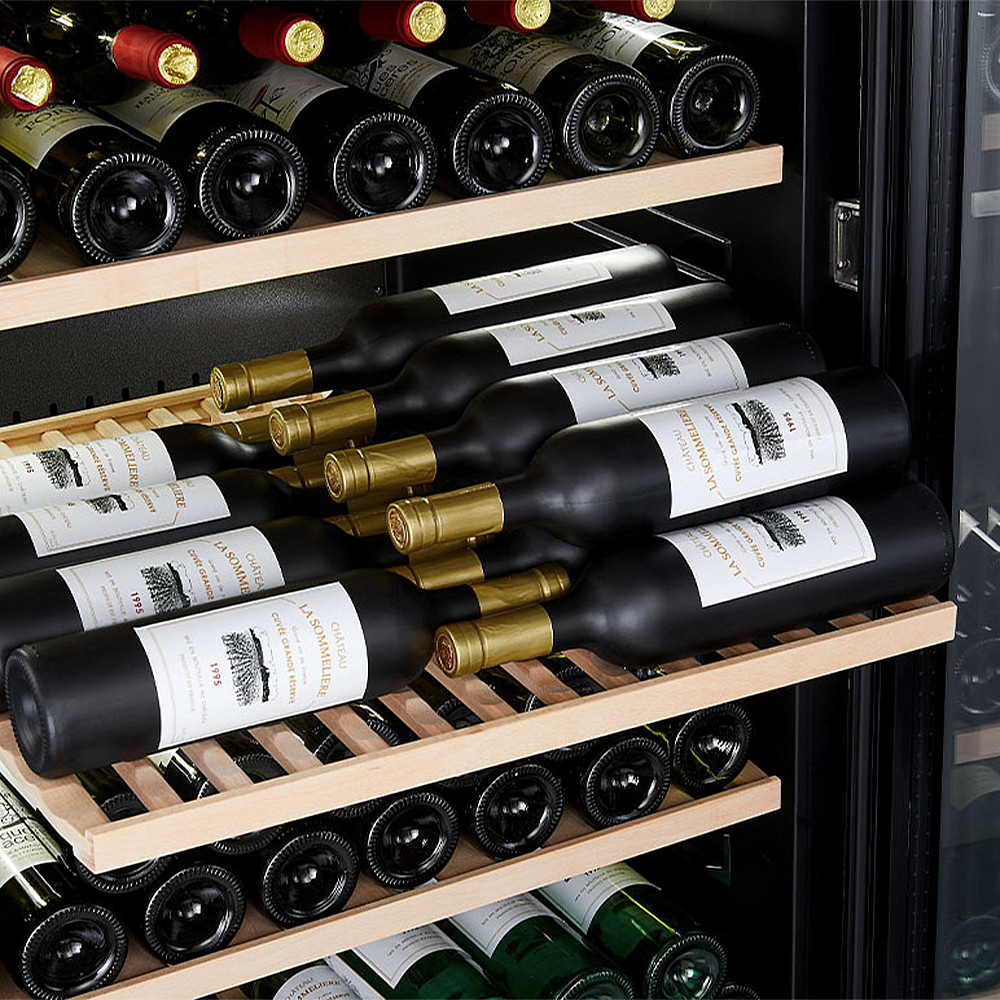 I Apogee-serien från La Sommeliere hittar du vinkylar av förstklassig kvalitet med modern teknik och elegant design. De massiva trähyllorna är anpassade för olika flasktyper och lyfts fram av kraftfull LED-belysning som verkligen framhäver din vinsamling.