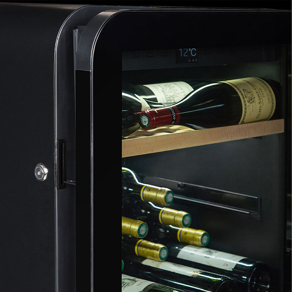 Förvaring i dessa vinkylar ger optimala förutsättningar för att bevara och utveckla vinets kvalitet. Den avancerade kyltekniken håller temperaturen stabil, medan det aktiva kolfiltret renar luften och skyddar flaskorna mot UV-strålar och vibrationer för långsiktig och säker lagring.