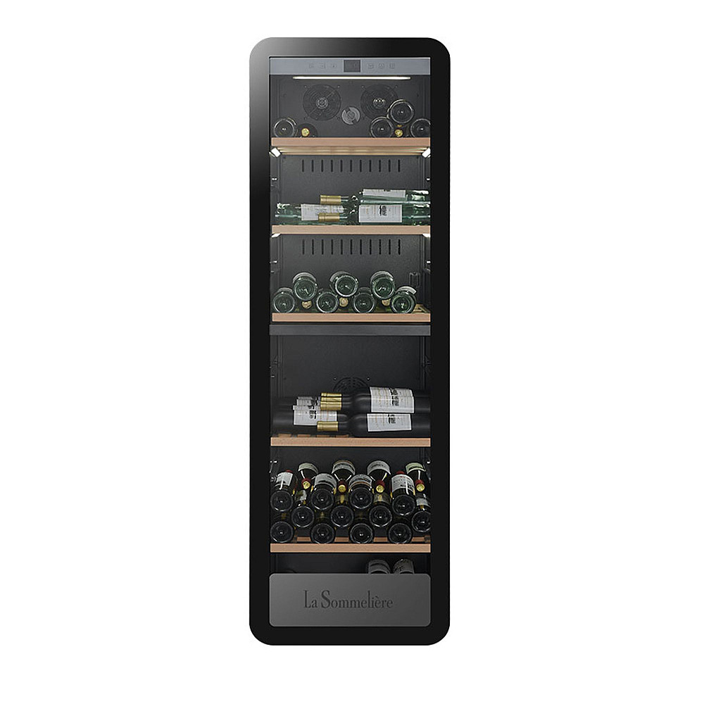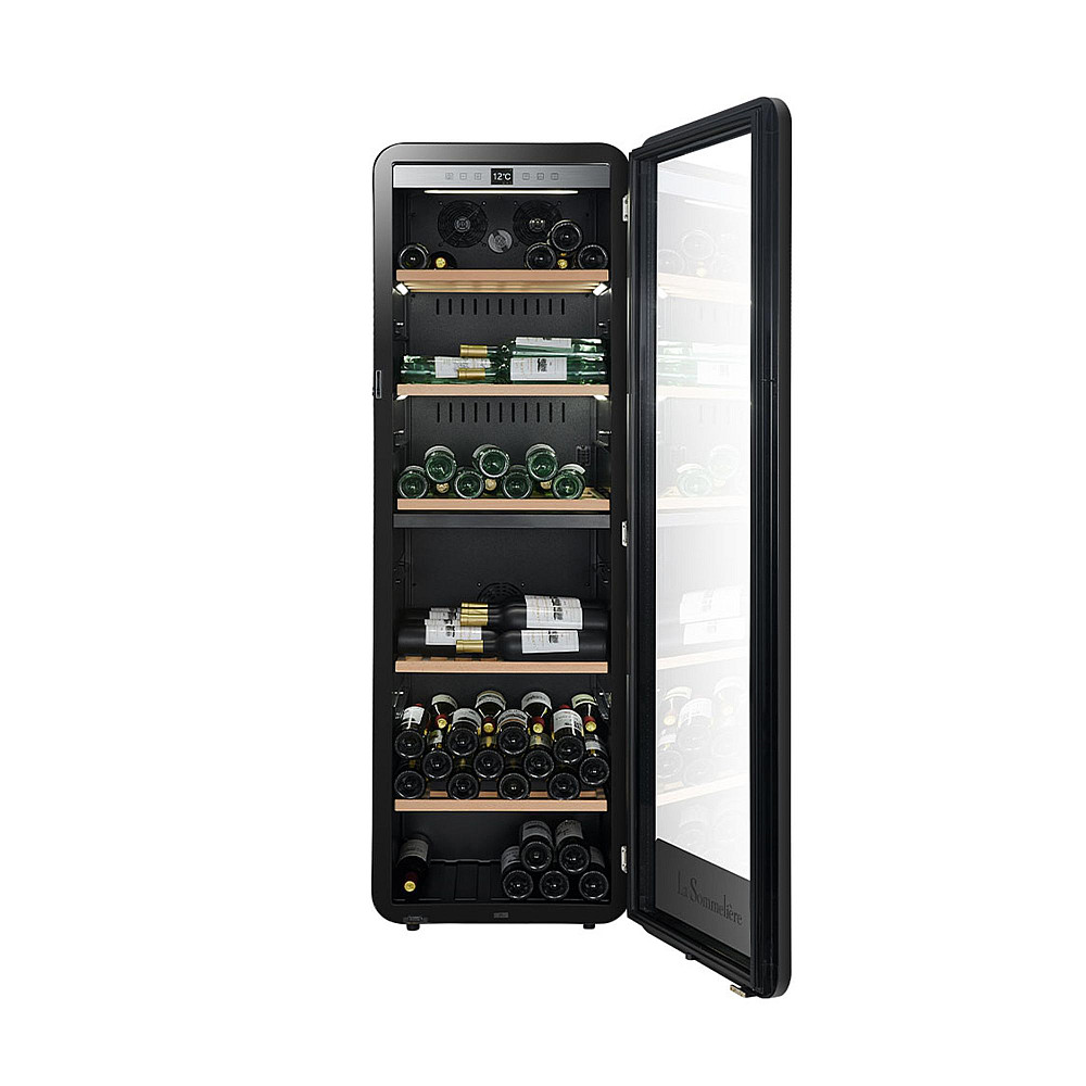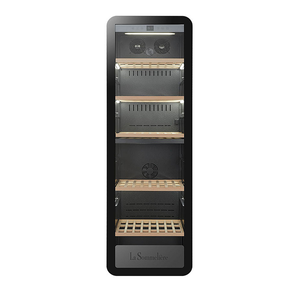 Denna serie från La Sommeliere erbjuder vinkylar av exceptionell kvalitet med modern teknik och elegant design. De massiva trähyllorna är utformade för att rymma olika flasktyper och lyfts fram av kraftfull LED-belysning som framhäver din vinsamling på ett imponerande sätt.