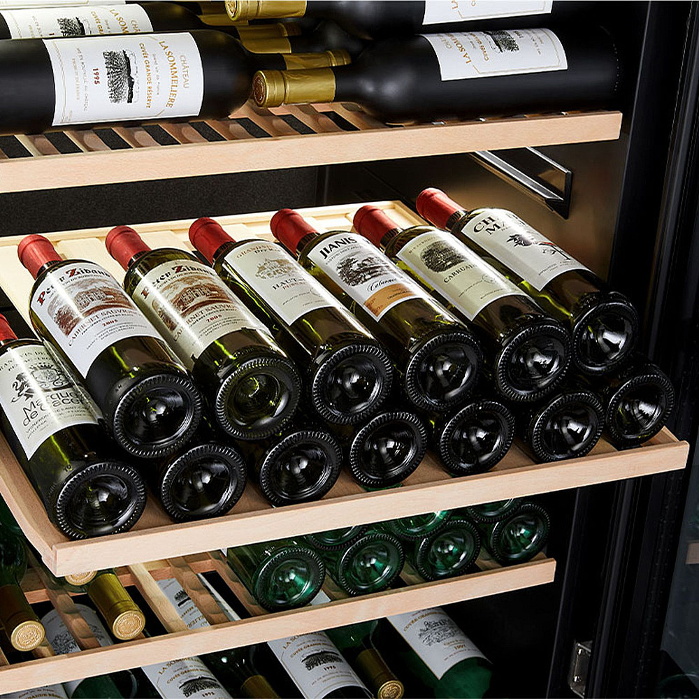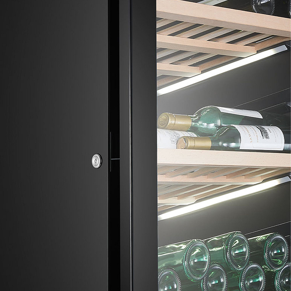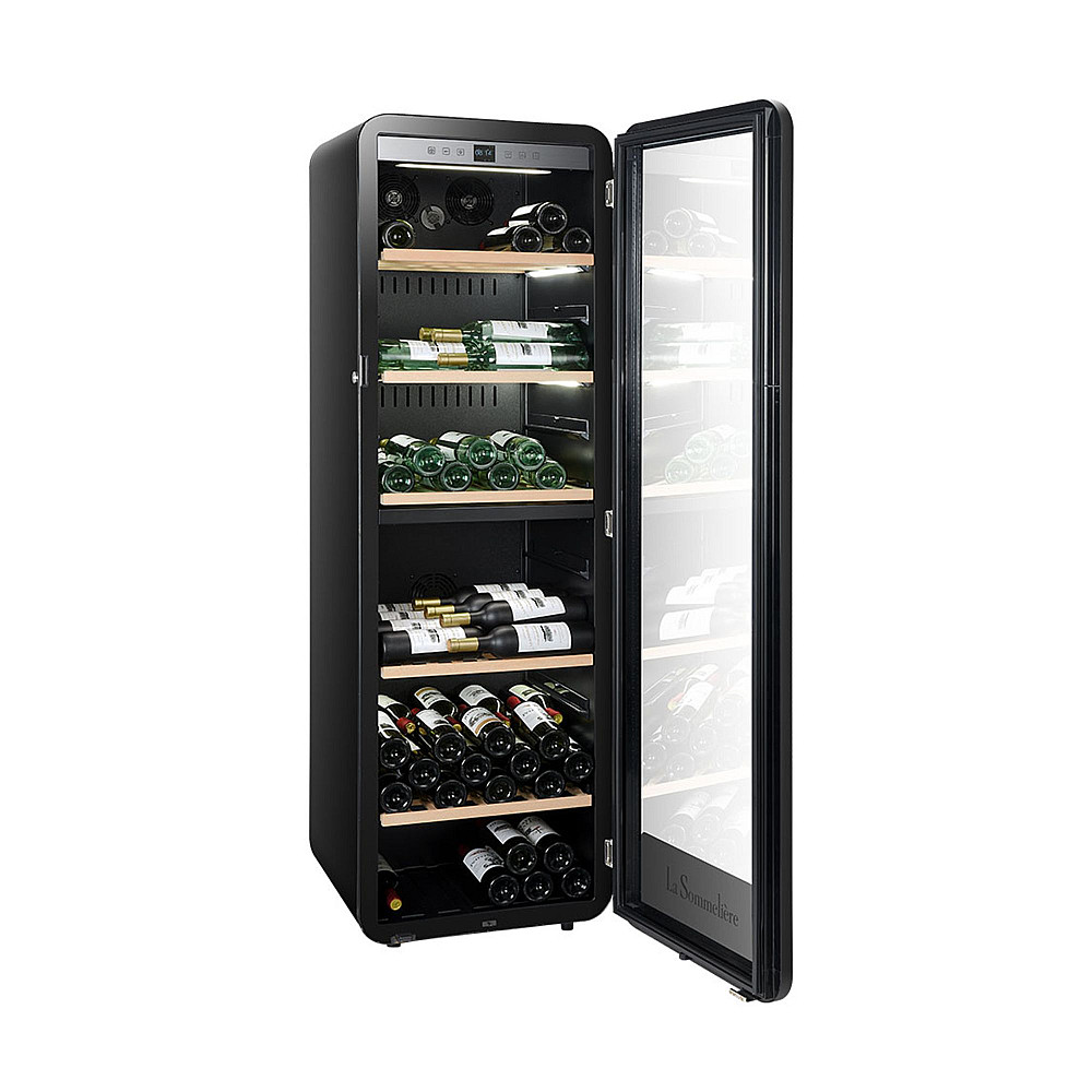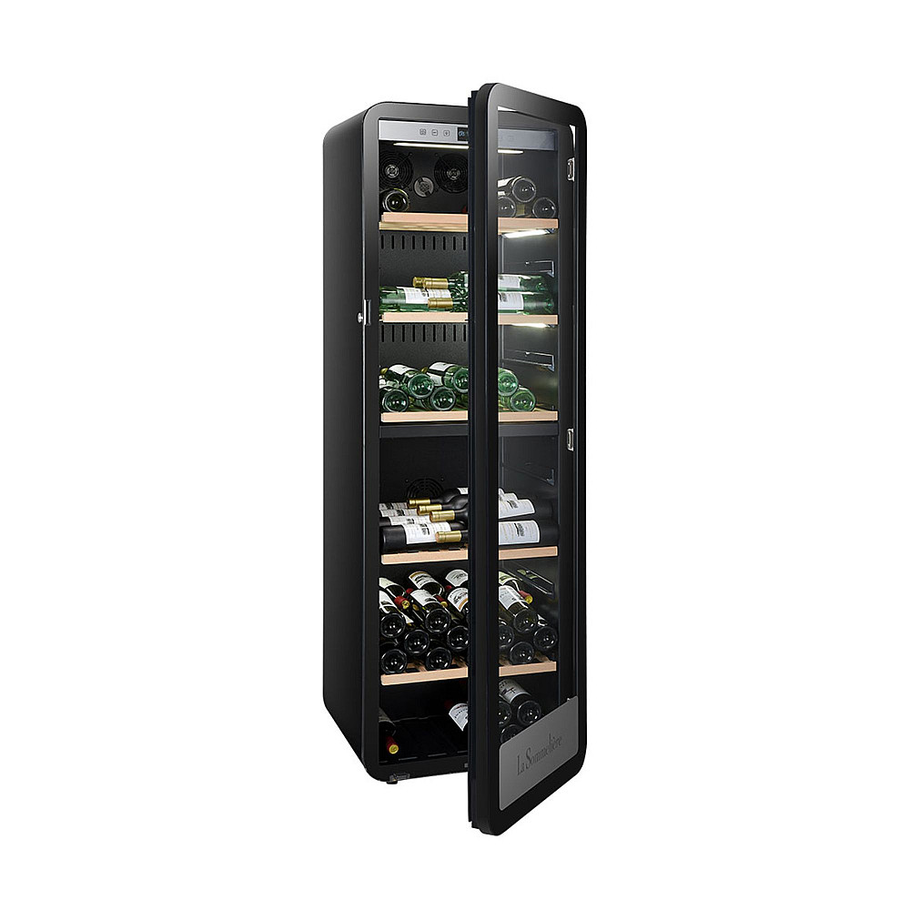 Denna serie från La Sommeliere erbjuder vinkylar av exceptionell kvalitet med modern teknik och elegant design. De massiva trähyllorna är utformade för att rymma olika flasktyper och lyfts fram av kraftfull LED-belysning som framhäver din vinsamling på ett imponerande sätt.