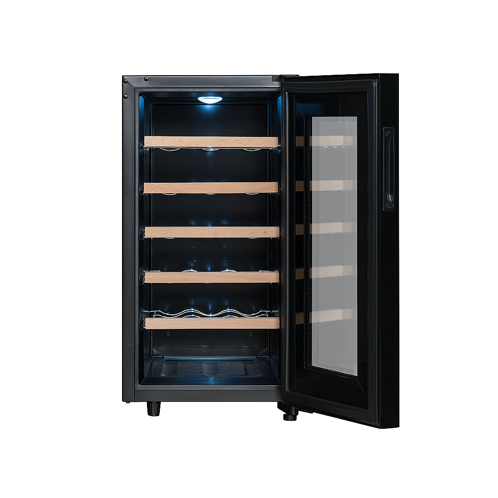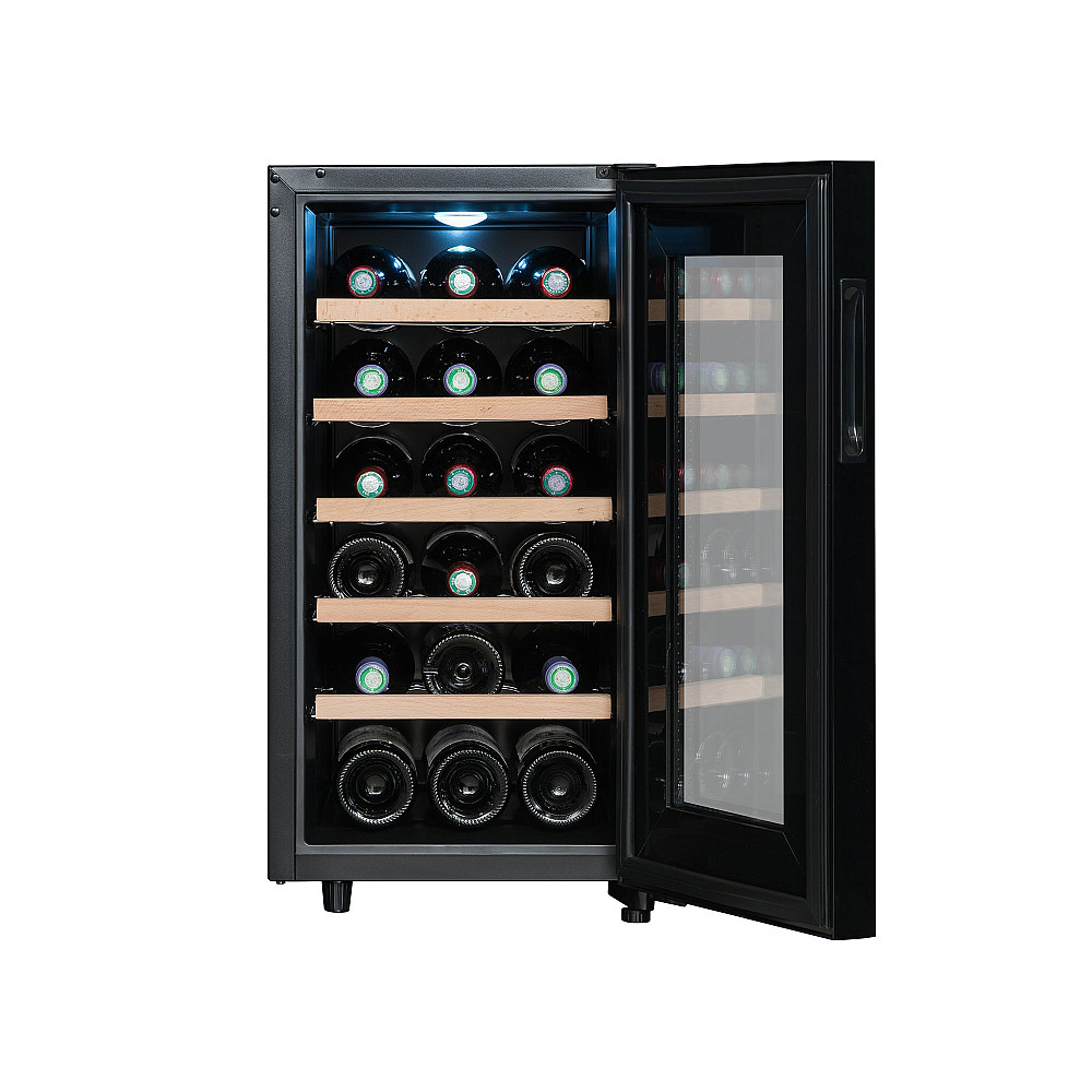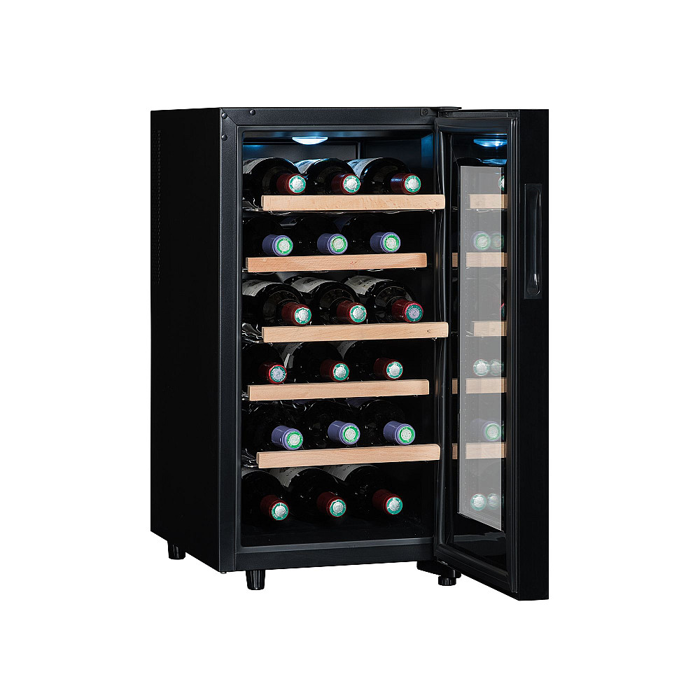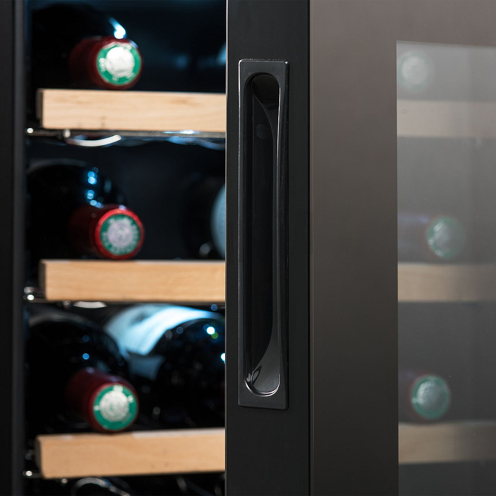 Dess snygga design och kompakta storlek gör den enkel att integrera i både kök och vardagsrum. Den UV-skyddade glasdörren skyddar din vinsamling samtidigt som den integrerade pekskärmen i dörren gör det lätt att justera temperaturen.