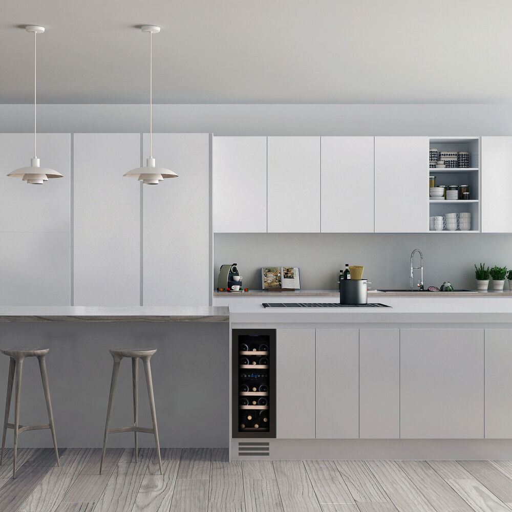 Specifikationer. Installationssätt inbyggnad under bänk kapacitet upp till 17 flaskor 0,75 l bordeaux temperaturzoner två hyllor solida trähyllor dörr med rostfritt handtag belysning ljusblå interiör kyltyp vinkyl avsedd för inbyggnad ej fristående.