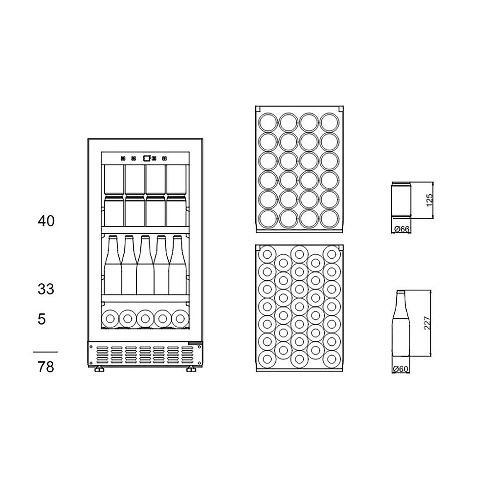 - Kapacitet (antal flaskor): 40