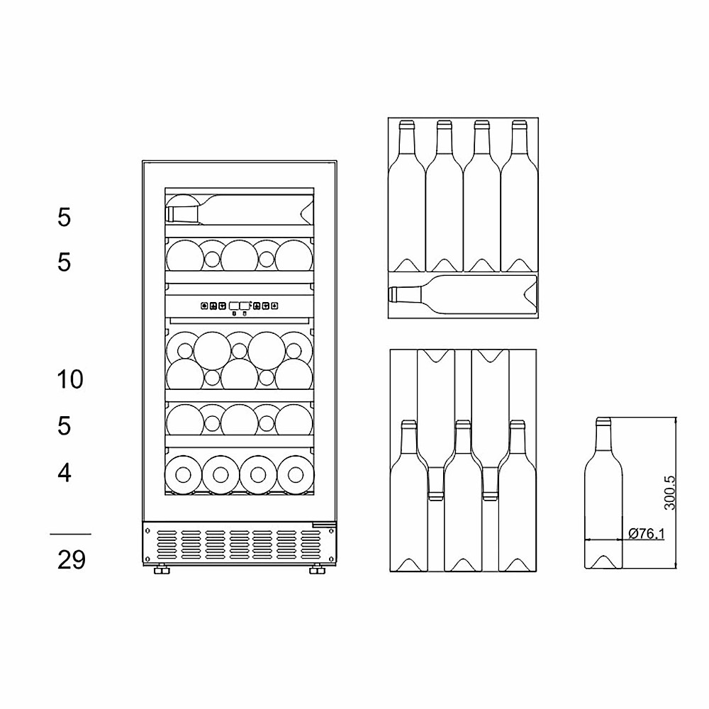 Optimal förvaring för olika vintyper. Vinkylen har två temperaturzoner som gör det möjligt att förvara både rött och vitt vin vid rätt temperatur. Fem utdragbara trähyllor ger vibrationsfri förvaring och plats för upp till 29 flaskor, så att vinet kan mogna i rätt takt.