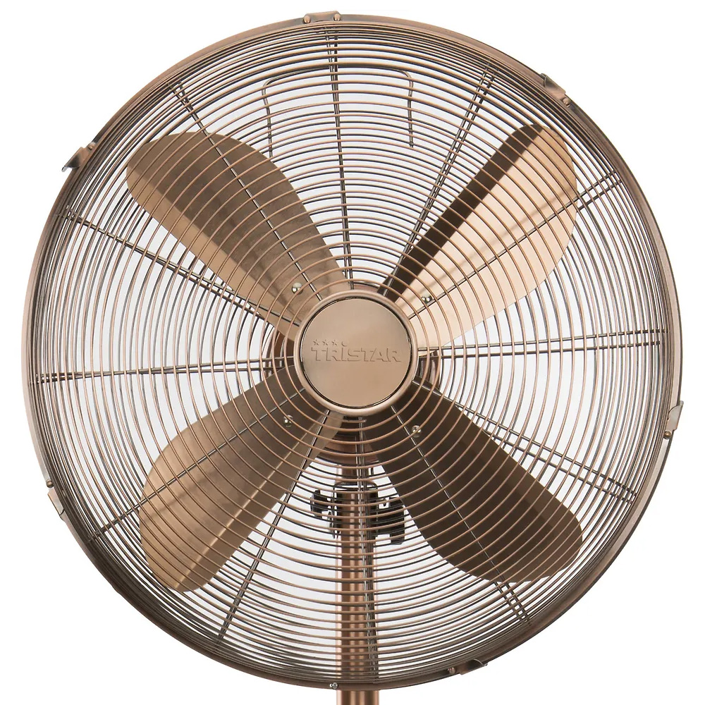 Kraftfull kylning med stilren design. Tristar Standing Fan 40 cm är en golvfläkt som kombinerar effektiv ventilation med en retroinspirerad kopparfärgad metallkonstruktion. Den är framtagen för att ge pålitlig svalka under varma dagar samtidigt som den fungerar som ett stilfullt inslag i rummet.