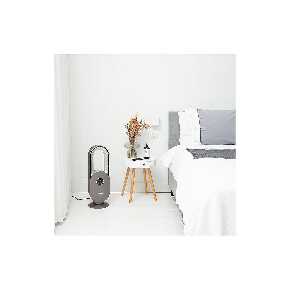 Modern kylning med stilrent uttryck. Princess 351521 är en bladlös solfjäder utvecklad för dig som vill ha effektiv svalka utan att kompromissa med form eller säkerhet. Den eleganta designen gör att fläkten passar lika bra i vardagsrum som i sovrum eller arbetsmiljö.